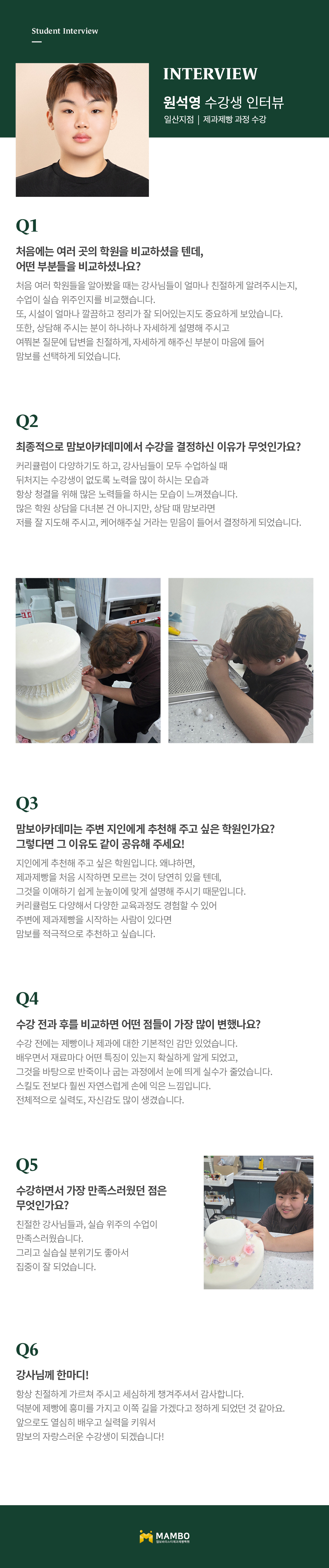 교육의 기반을 달리하여 학생의 기회를 잡아주며 직원의 기강이 태만하지 않은 맘보바리스타제과제빵학원